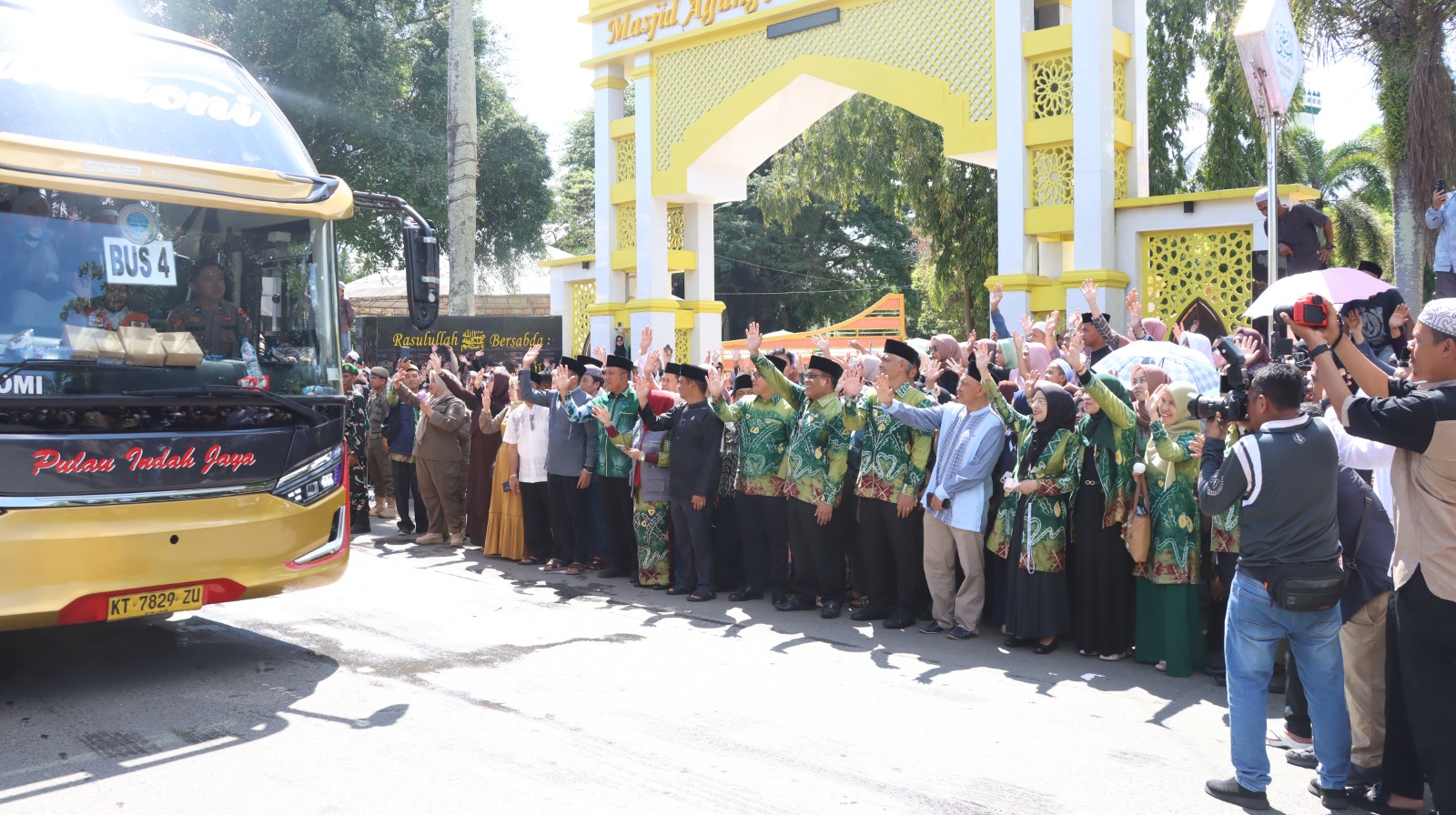 Amuntai, 2025 – Keberangkatan Jemaah Calon Haji Kabupaten Hulu Sungai Utara (HSU) Kloter 08 Tahun 2025 berlangsung dengan penuh khidmat. Kegiatan ini diselenggarakan oleh Kementerian Agama (Kemenag) HSU dan dihadiri oleh berbagai pejabat daerah serta masyarakat.