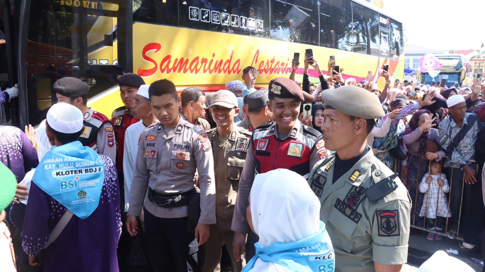 Kapolres Hulu Sungai Utara AKBP Agus Nuryanto, S.I.K,.M.Si, Melalui Kapolsek Amuntai Tengah Ipda Sulistono, S.Sos. Menyampaikan “Polres Hulu Sugai Utara berkomitmen terus memberikan pengamanan maksimal hingga seluruh jamaah kembali ke tanah air dengan selamat.Dengan pengamanan yang terkoordinasi dengan baik, diharapkan seluruh jamaah haji dapat menjalankan ibadahnya dengan khusyuk dan lancar tanpa kendala.”