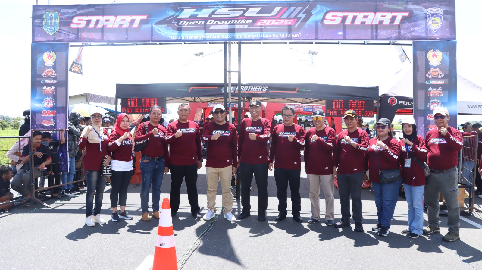 Amuntai, 2025 – Kegiatan Open Drag Bike 2025 yang diselenggarakan di Kabupaten Hulu Sungai Utara (HSU) resmi dibuka oleh Bupati H. Sahrujani. Acara ini berlangsung meriah dan dihadiri oleh berbagai pejabat daerah serta peserta yang sangat antusias.