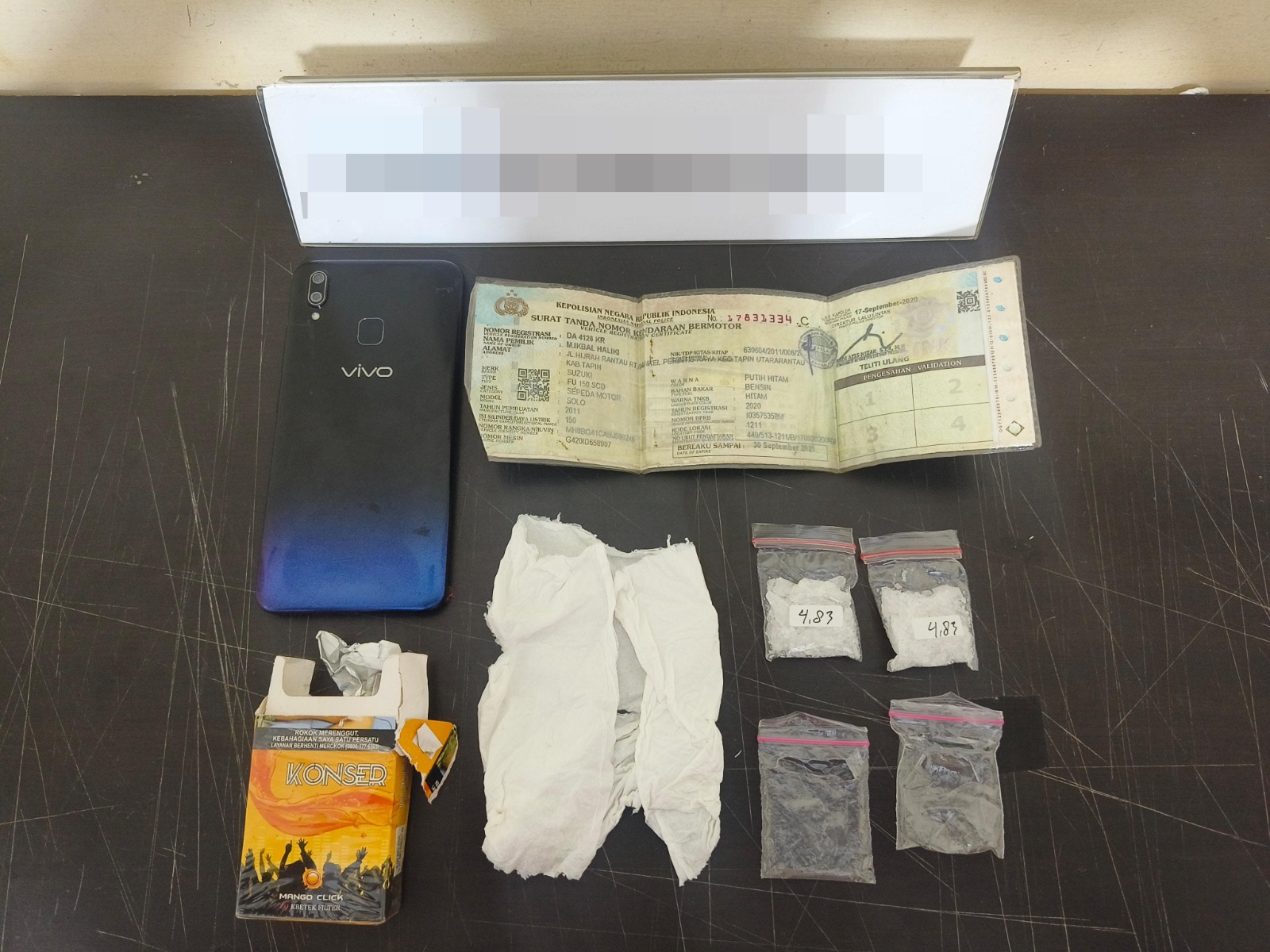 Selain dua paket sabu dengan berat bruto 10 gram dan netto 9,66 gram, barang bukti lainnya yang diamankan meliputi: