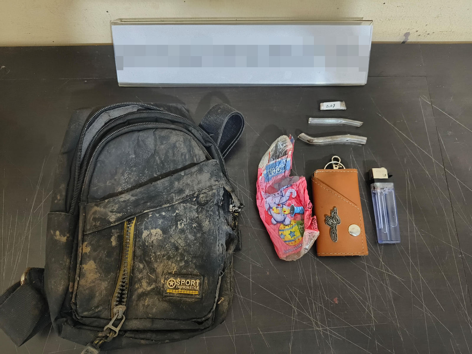 Barang bukti yang ditemukan meliputi1 (satu) paket sabu dengan berat kotor 0,25 gram dan berat bersih 0,07 gram, 2 pipet kaca warna transparan, 1 plastik bekas bungkus tisu warna merah muda, 1 dompet kecil warna coklat, 1 korek api warna ungu, 1 tas selempang warna hitam, dan 1 unit sepeda motor Yamaha FIZ R warna hitam tanpa nomor polisi.