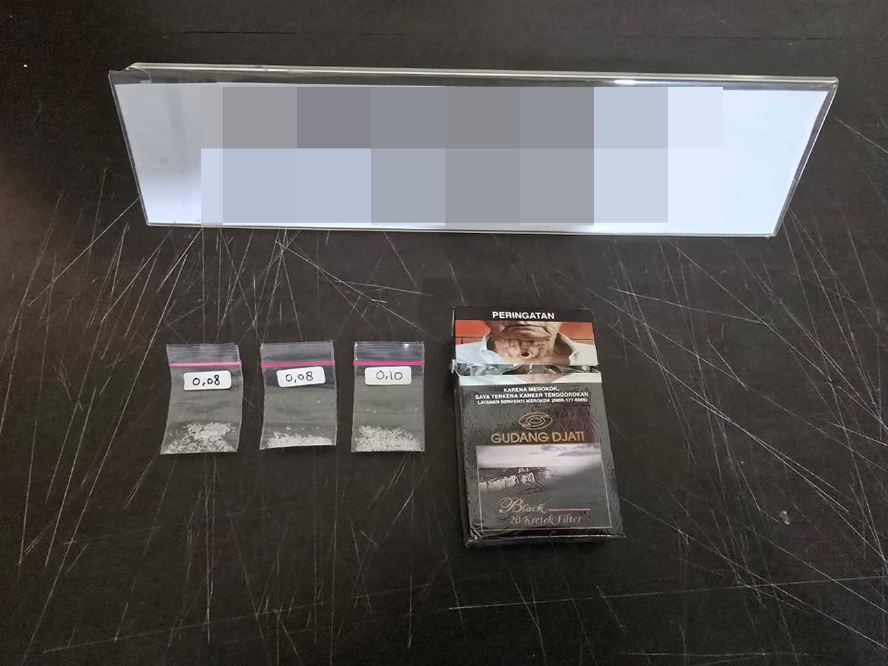 Tak lama berselang, kedua pria yang dimaksud terlihat dan langsung diamankan oleh petugas. Mereka adalah AR alias AK dan B alias IB (dalam kasus terpisah). Saat diamankan, petugas melihat AR alias AK sempat membuang sebuah kotak rokok Gudang Djati warna hitam ke tanah. Setelah diperiksa, kotak tersebut berisi tiga paket sabu dengan berat keseluruhan 0,80 gram (berat bersih 0,26 gram).