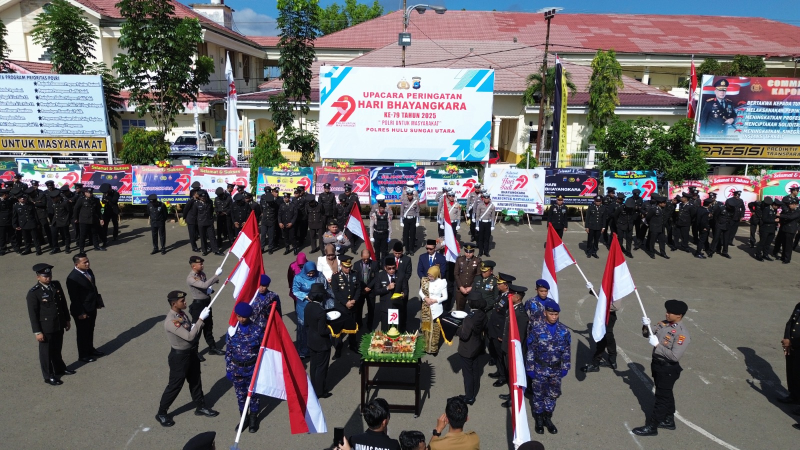 Rangkaian kegiatan syukuran diawali dengan pembukaan dan doa bersama, dilanjutkan dengan pembacaan sambutan Kapolri, dan prosesi pemotongan tumpeng sebagai simbol rasa syukur dan penghormatan. Potongan tumpeng pertama dilakukan oleh Bupati HSU dan diserahkan kepada Kapolres HSU, kemudian secara berantai diserahkan kepada personel Polri tertua dan termuda sebagai wujud penghargaan terhadap dedikasi lintas generasi.