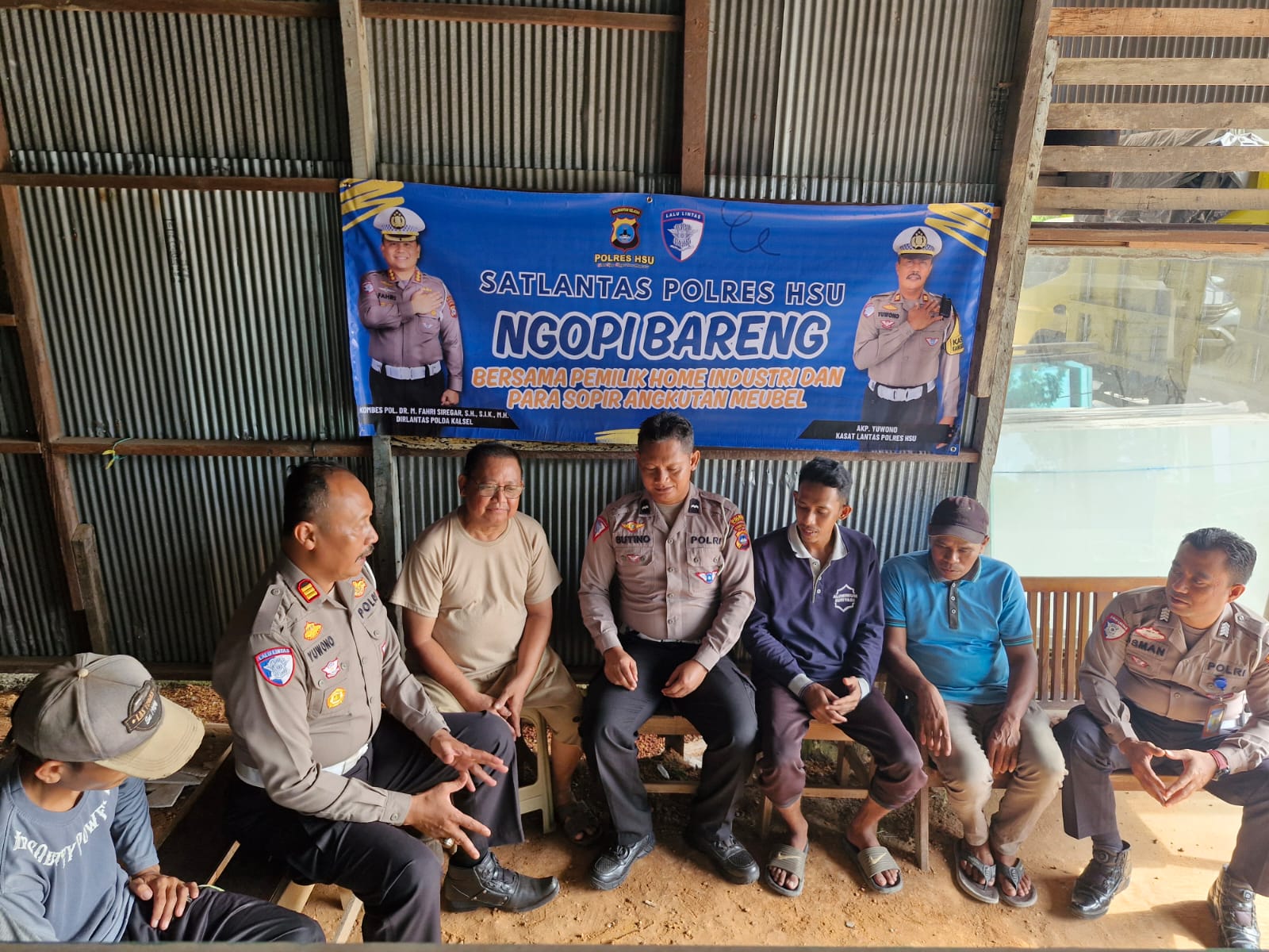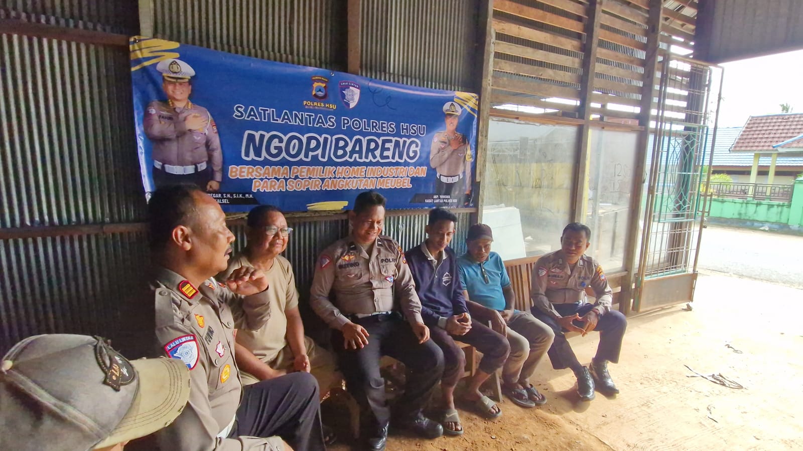 Sat lantas Polres HSU Gelar Program ‘Ngopi Bareng’ Bersama Pemilik Home Industri dan Sopir Angkutan Meubel
