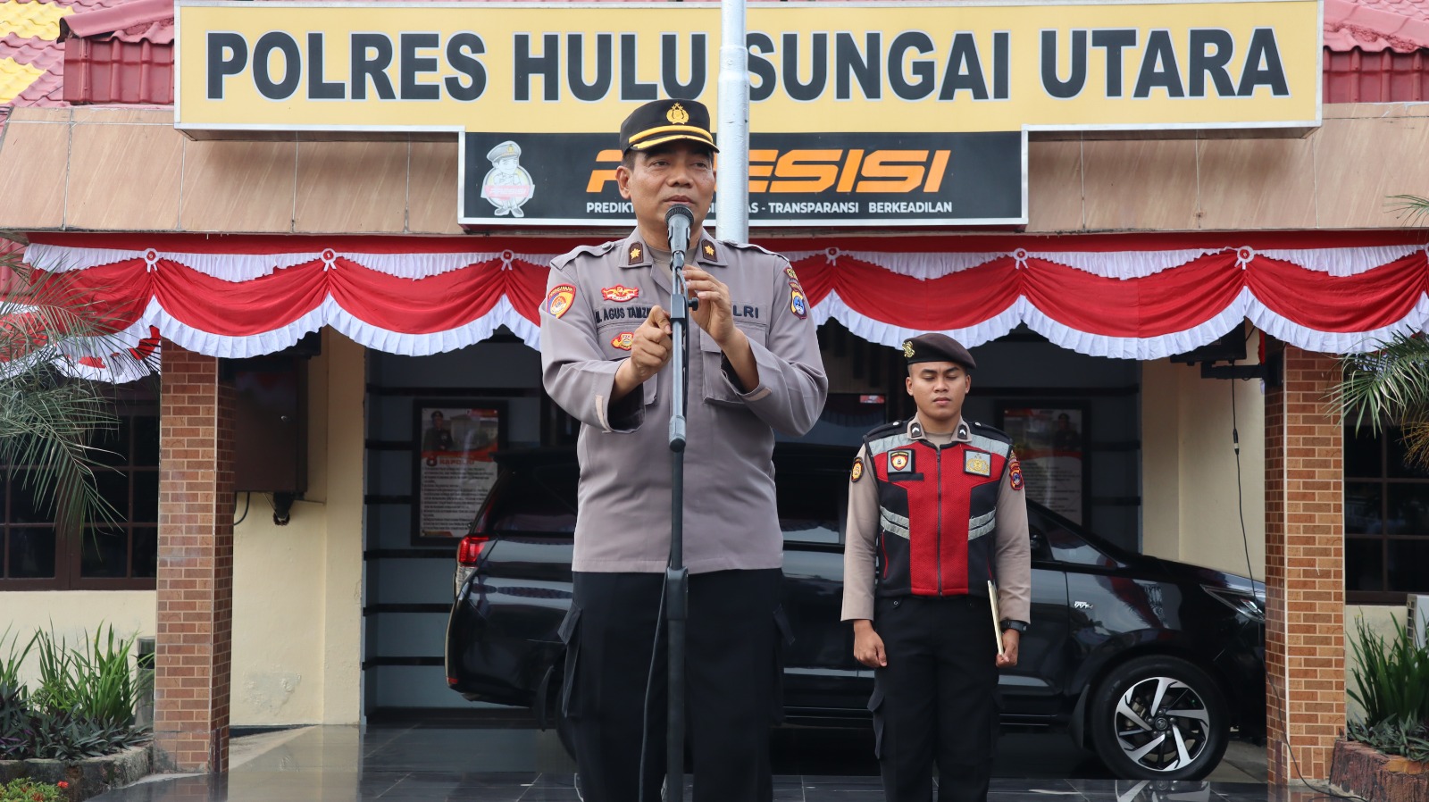 Kapolres Hulu Sungai Utara, AKBP Agus Nuryanto, S.I.K., M.Si, memberikan apresiasi atas pelaksanaan apel siang ini. Dalam keterangannya, beliau menyampaikan: