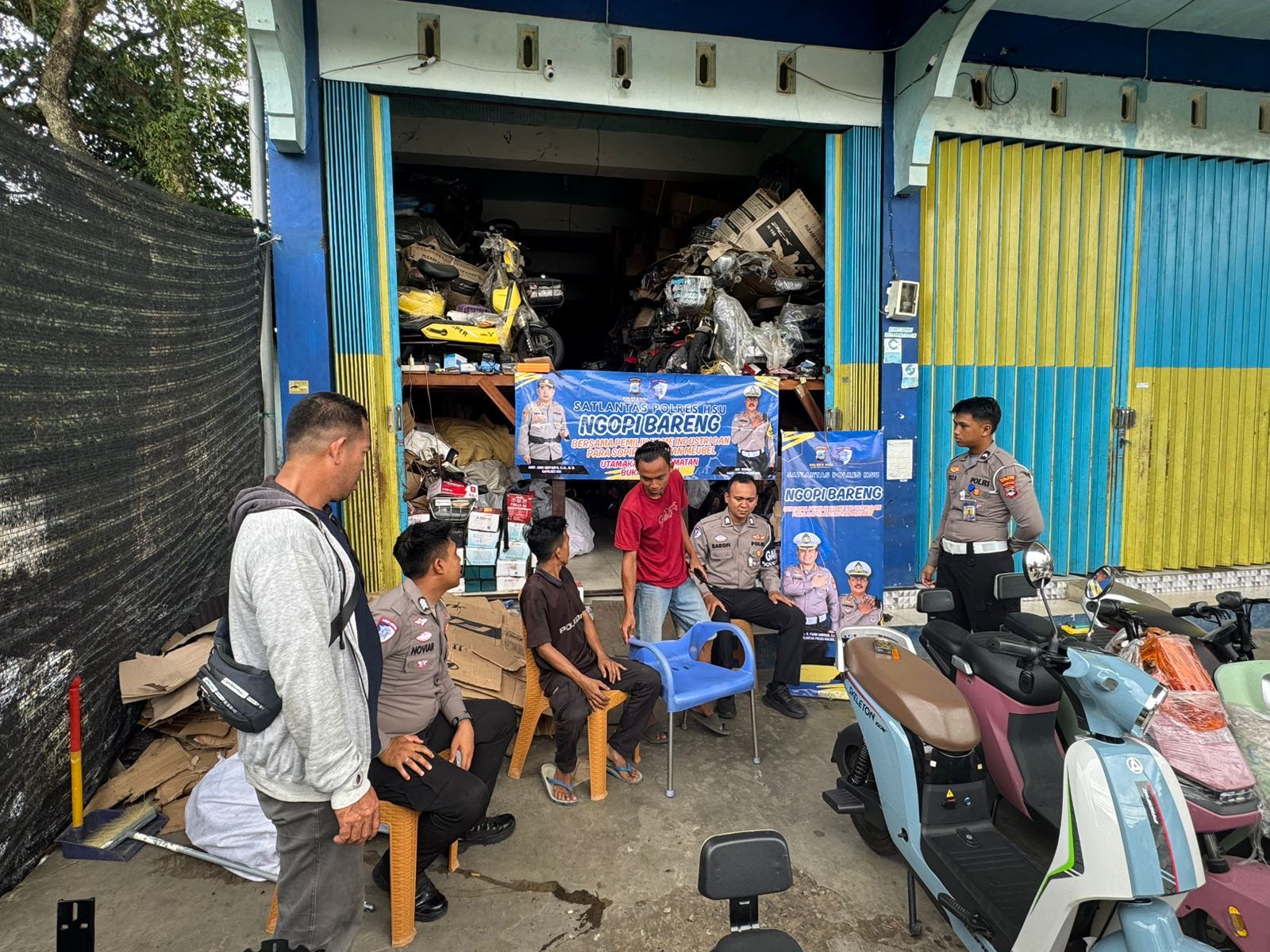 Dalam upaya mempererat kemitraan dan membangun komunikasi yang humanis dengan masyarakat, Satuan Lalu Lintas (Sat Lantas) Polres Hulu Sungai Utara (HSU) menggelar program “Polantas Menyapa” melalui kegiatan Ngopi Bareng bersama para pemilik home industri dan sopir angkutan meubel. Kegiatan ini berlangsung pada Minggu, 13 Juli 2025, bertempat di Toko Sepeda Listrik INAS, Jl. Bihman Villa, Kelurahan Murung Sari, Kabupaten HSU, mulai pukul 10.00 WITA hingga selesai.