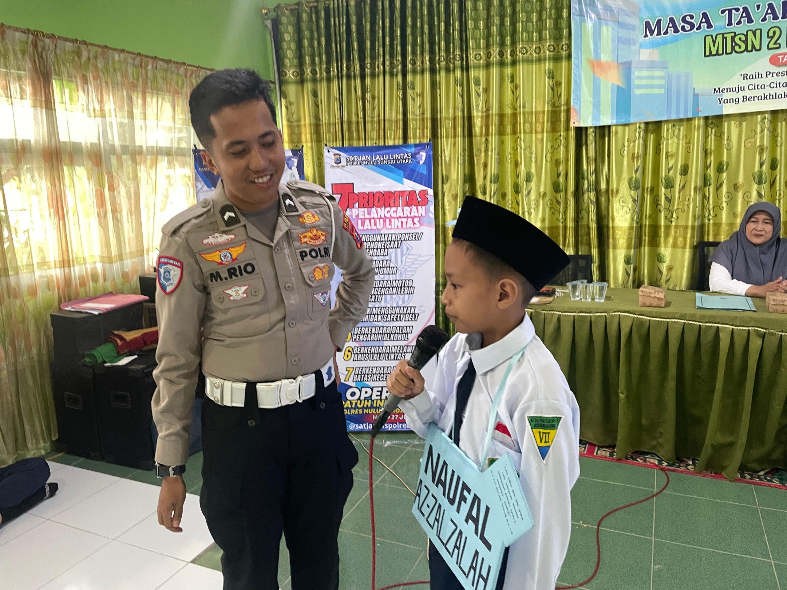 Satlantas Polres HSU Edukasi Tertib Berlalu Lintas kepada Pelajar MTSN 2 HSU dalam Rangka Ops Patuh Intan 2025