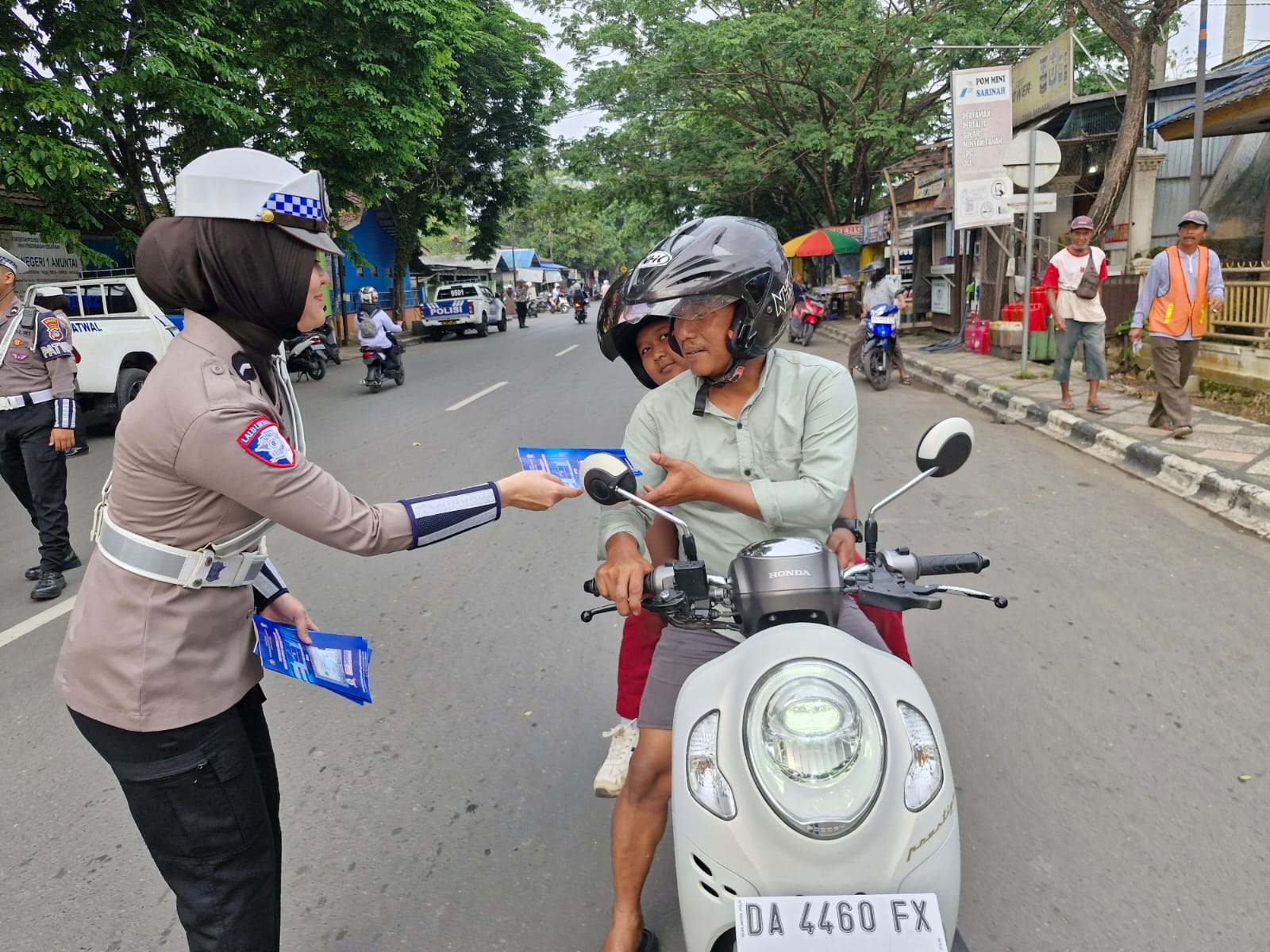 Kegiatan Edukasi Humanis, Satlantas Hadir Lebih Dekat ke Masyarakat. Kegiatan yang dipimpin langsung oleh Kasat Lantas Polres HSU AKP Yuwono beserta personel Satgas Preemtif Satlantas Polres HSU ini menyasar langsung masyarakat pengguna jalan dengan pendekatan edukatif yang humanis.
