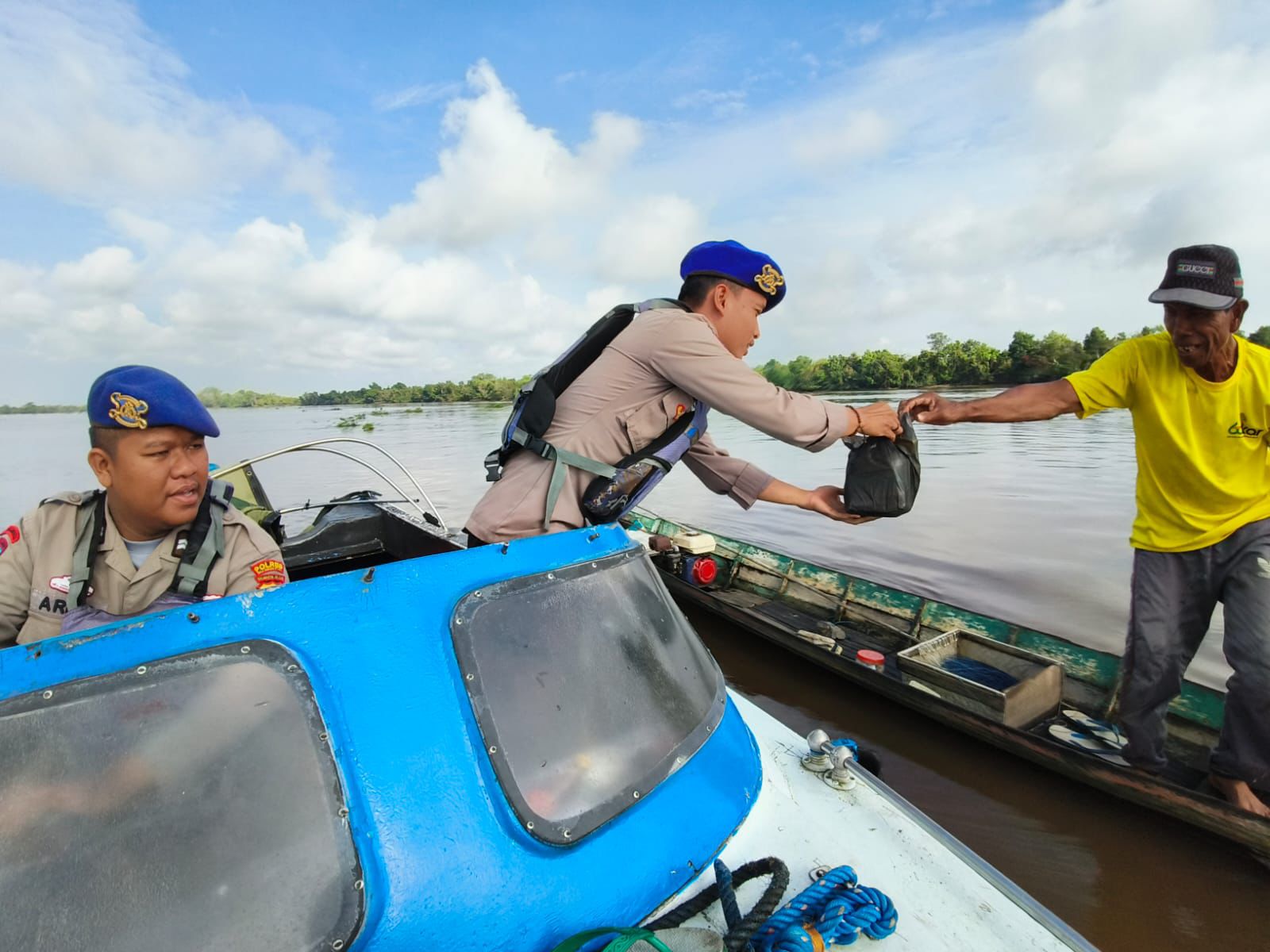Amuntai – Dalam rangka mendekatkan diri dengan masyarakat sekaligus meringankan beban ekonomi warga di wilayah perairan, Satuan Polisi Air dan Udara (Sat Polairud) Polres Hulu Sungai Utara (HSU) menggelar kegiatan sosial bertajuk “Jum’at Berkah” pada Jumat, 18 Juli 2025. Kegiatan yang dimulai pukul 09.00 WITA ini dilaksanakan di kawasan perairan Sungai Barito dan Desa Paminggir, Kecamatan Paminggir, dengan membagikan paket sembako kepada warga yang membutuhkan.