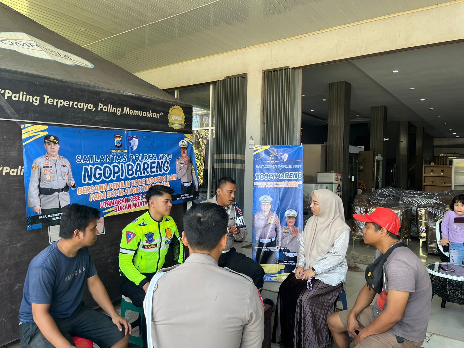 Dalam kesempatan tersebut, perwakilan Sat Lantas Polres HSU menyampaikan bahwa “Ngopi Bareng” merupakan wadah untuk mendengarkan secara langsung aspirasi maupun keluhan para pelaku usaha serta para sopir angkutan mebel. Melalui kegiatan ini, diharapkan para sopir dan pemilik usaha semakin memahami risiko hukum serta bahaya keselamatan dari kendaraan yang melebihi kapasitas dan ukuran. Selain itu, kegiatan ini juga menjadi momentum memperkuat sinergi dalam menjaga keamanan dan kelancaran lalu lintas, guna mendukung pertumbuhan industri lokal secara berkelanjutan.