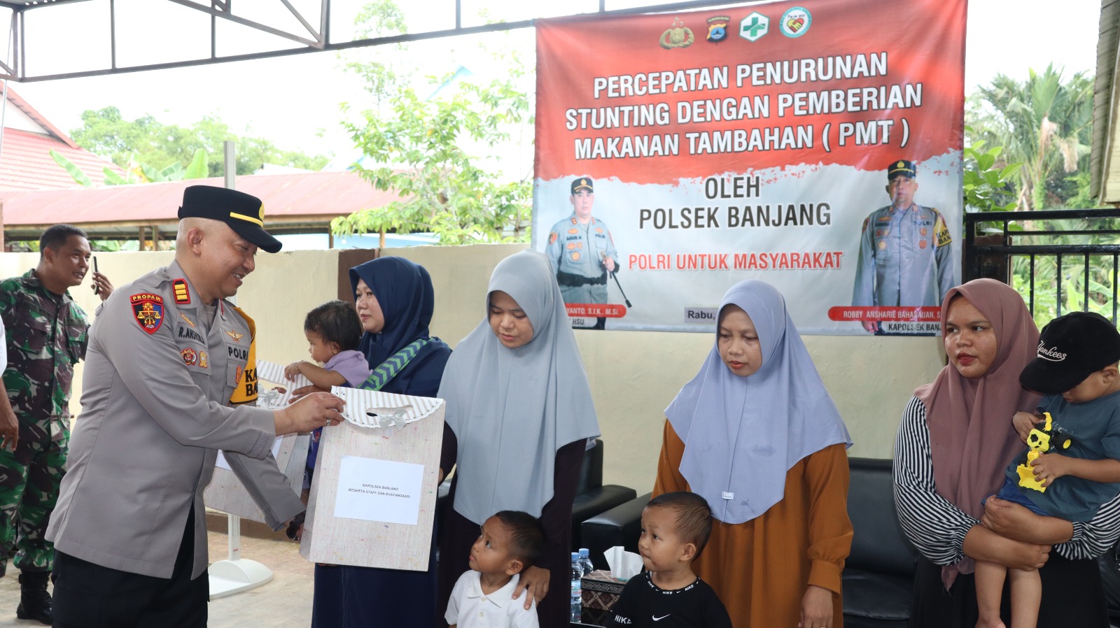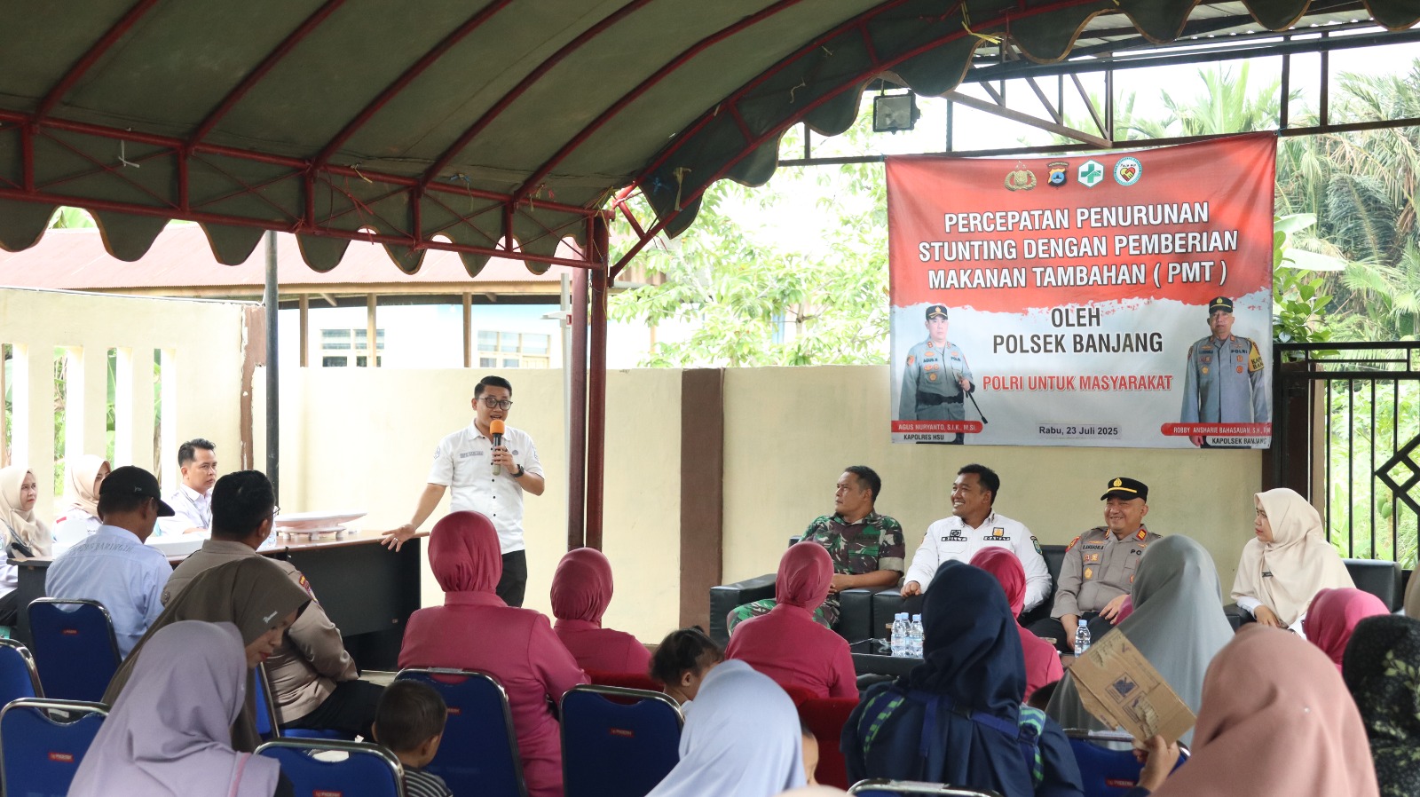 Kapolres Hulu Sungai Utara, AKBP Agus Nuryanto, S.I.K., M.Si Melalui Kapolsek Banjang AKP Robby Ansharie Bahasuan, SH., MM, dalam keterangannya menyampaikan “Dengan adanya Program percepatan penurunan stunting ini merupakan langkah strategis pemerintah yang sangat kami dukung. Polri hadir bukan hanya sebagai penjaga keamanan, tetapi juga sebagai bagian dari solusi atas permasalahan sosial, termasuk kesehatan anak. Melalui kegiatan ini, kami ingin menunjukkan siap bersinergi dengan semua pihak dalam mendukung upaya peningkatan kualitas hidup masyarakat, khususnya generasi penerus bangsa.” ungkap Kapolsek Banjang.