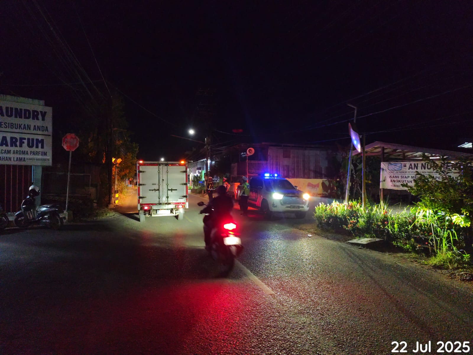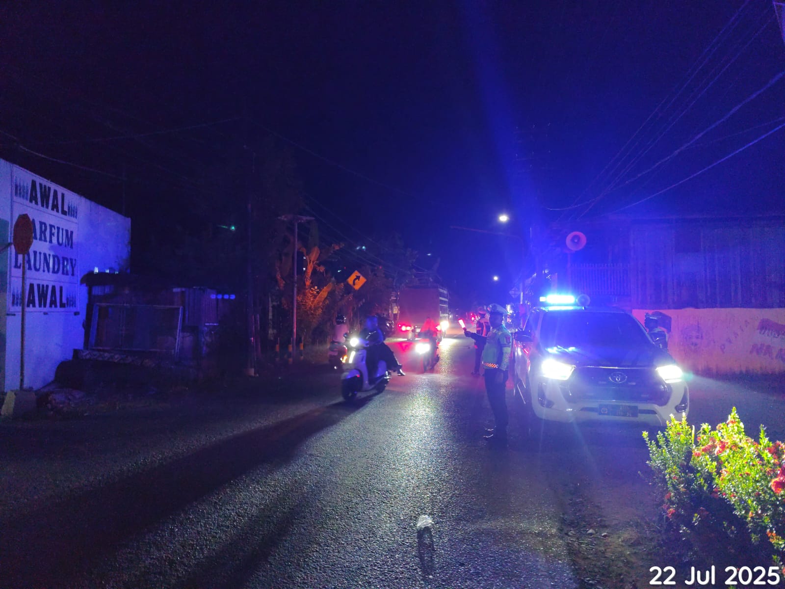 Amuntai – Untuk menekan angka kecelakaan serta menciptakan kelancaran dan keamanan berlalu lintas di malam hari, Satuan Lalu Lintas Polres Hulu Sungai Utara (Satlantas Polres HSU) menggelar Kegiatan Patroli dan Pengaturan Lalu Lintas di sejumlah titik rawan pelanggaran dan kemacetan pada Selasa malam, 22 Juli 2025, mulai pukul 20.30 WITA hingga selesai.