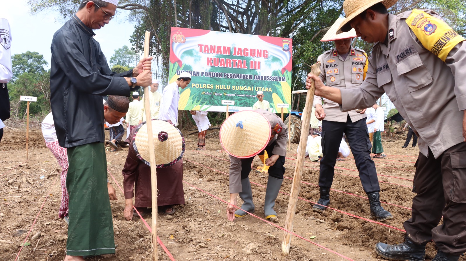 Polres HSU Bersama Ponpes Darussalam Tanam Jagung di Lahan 1 Hektare, Dukung Ketahanan Pangan dan Pemberdayaan Santri