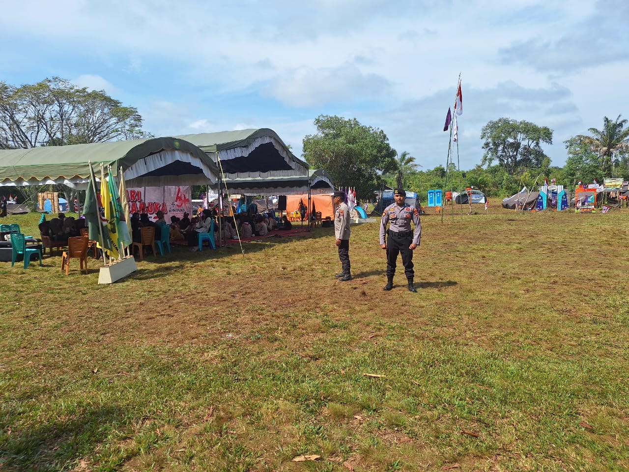 Pengamanan ini dipimpin oleh Aiptu Ferry Ario Permada, bersama Bripka Hendra Pranata, Bripka Eko Prastianto, dan Bripka Lamin Syahril, dengan menggunakan dua unit sepeda motor patroli (R2) milik Polsek Amuntai Utara. Dalam giat tersebut, petugas melakukan pemantauan situasi di sekitar area perkemahan, memastikan keamanan lokasi, mengatur lalu lintas di pintu masuk dan keluar, serta memberikan himbauan kepada peserta pramuka terkait pentingnya menjaga ketertiban, keselamatan, dan kesehatan selama kegiatan berlangsung.