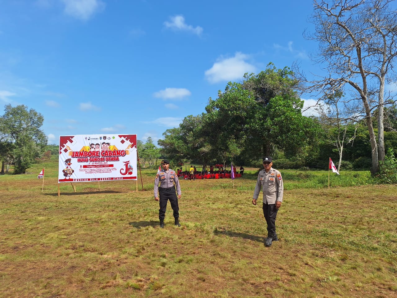 Dalam rangka memberikan rasa aman dan kelancaran kegiatan Jambore Cabang Gerakan Pramuka Hulu Sungai Utara (HSU), jajaran Polres HSU melalui personel Polsek Amuntai Utara melaksanakan patroli, pengamanan, dan pemberian himbauan keselamatan kepada para peserta perkemahan. Kegiatan berlangsung pada Minggu, 10 Agustus 2025, pukul 10.00 WITA hingga 11.00 WITA, berlokasi di Bumi Perkemahan Padang Golf Air Tawar Indah, Kecamatan Amuntai Utara.