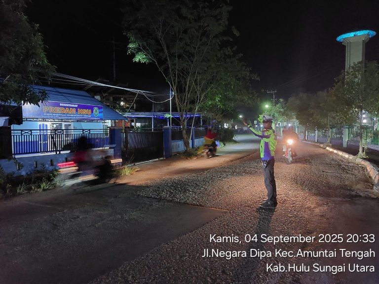 Sungai Pandan, Hulu Sungai Utara — Dalam rangka menjaga keamanan dan ketertiban masyarakat (Harkamtibmas), Polsek Sungai Pandan Polres Hulu Sungai Utara melaksanakan patroli dialogis dan patroli sambang pada Kamis malam, 04 September 2025, pukul 21.00 WITA sampai dengan 22.00 WITA. Kegiatan patroli malam tersebut dipimpin…